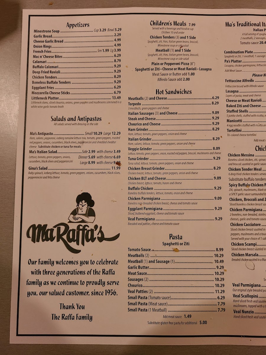 Ma Raffa's Somerset offers a menu rooted in classic Italian flavors with an inviting, casual feel. The selection ranges from comforting pasta dishes and rich, hearty pizzas to fresh salads and starters that are perfect for sharing. Whether you're stopping by for a relaxed weeknight dinner or a cozy weekend gathering, the menu provides satisfying options that complement the warm and approachable atmosphere of the restaurant.